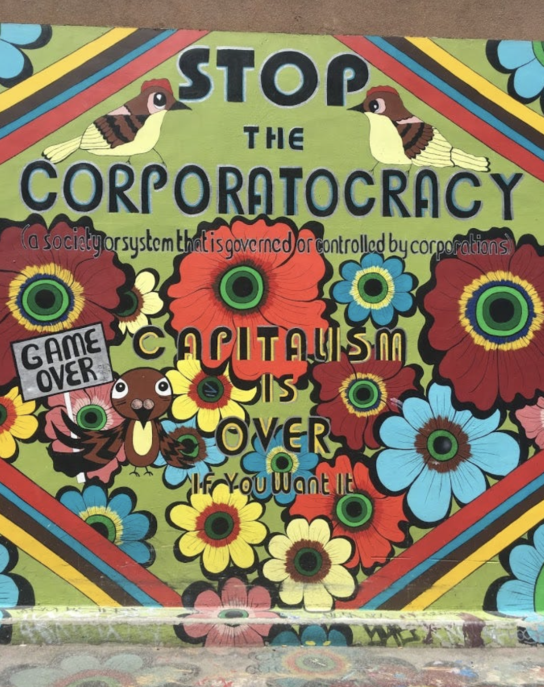 After a long walk down the middle of the Mission, we take a left turn into Clarion Alley, a local graffiti street that, as Nick described it, “illustrates the political pulse of the city”, and it’s immediately clear what he means. Both sides of the alley are lined, wall to wall, with full scale graffiti murals that are almost all political in nature. Rage against rising rents, tech bros, gentrification, Trump, white theft of culture — they are all on full display, loudly, in beautiful color, and confident voices.