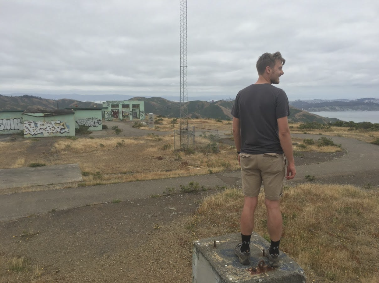 We press up the ridge line following the trail to an installation surrounded by chain link fence; an old Nike Missile Radar Station called Hill 88. During the Cold War there were long range missiles pointed out over the sea here. The Nike Missile system was set up to shoot down any Russian nukes, and they were stationed along the coast here, barely outside the city. Nick and I climb up on the old concrete radar bastions and survey the area. It has a breathtaking view, and the ghost town of empty buildings and abandoned helicopter pads is haunting, to say the least.